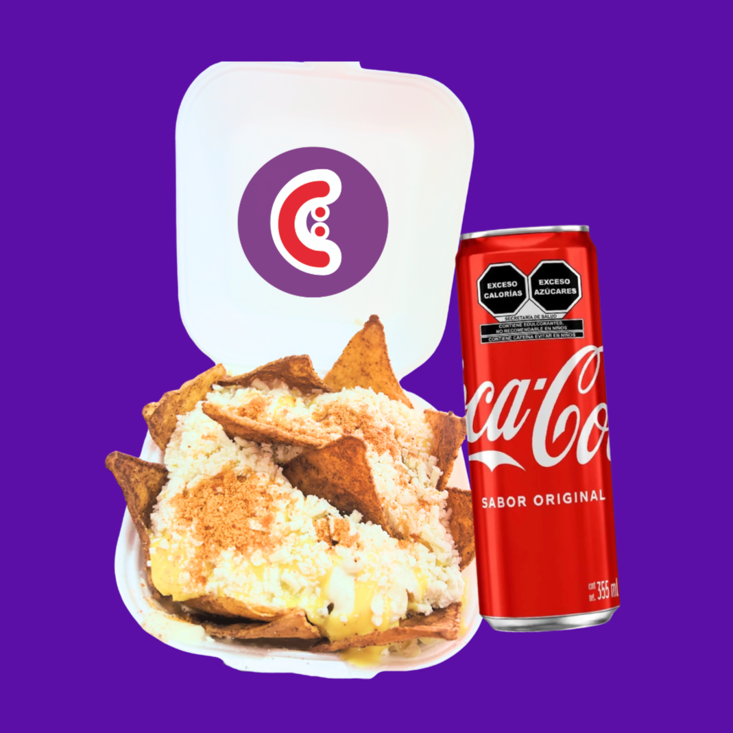 Maruchan con esquite, queso rallado, mayonesa, queso amarillo, frituras o cacahuates y un refresco de lata de 355ml.