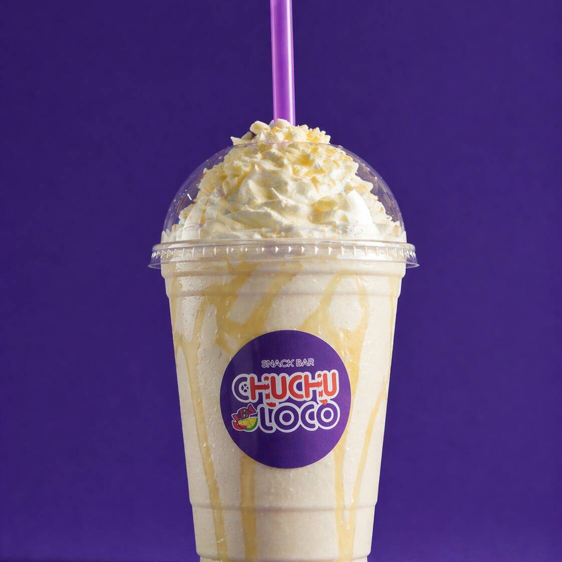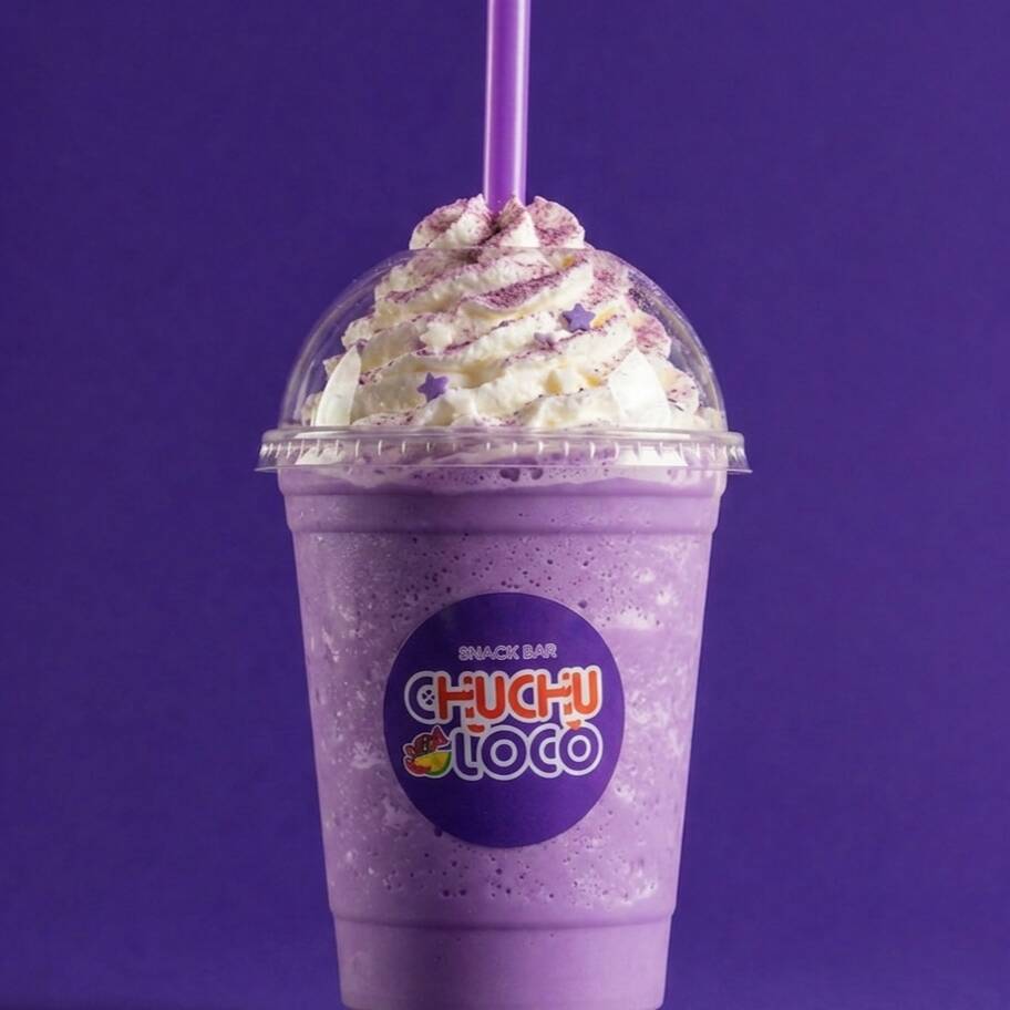 Frappe de Taro (sabor uva suave) con crema batida.