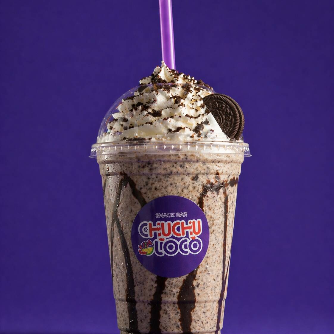 Frappe con base de chocolate blanco y galleta oreo acompañado de crema batida.