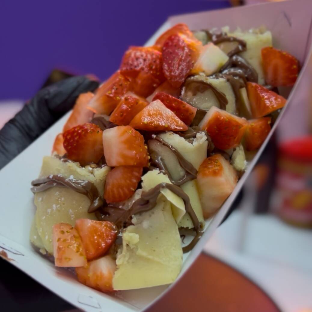 Crepa cortada en pequeños rollos con un ingrediente a elegir. (Si tu crepa es de un ingrediente, elige el mismo 3 veces en el apartado de toppings)