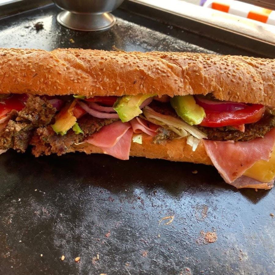 Carne (100% de res), Jamón, Queso amarillo, Queso Manchego, Verduras 🍅🥑🥬🧅🌶