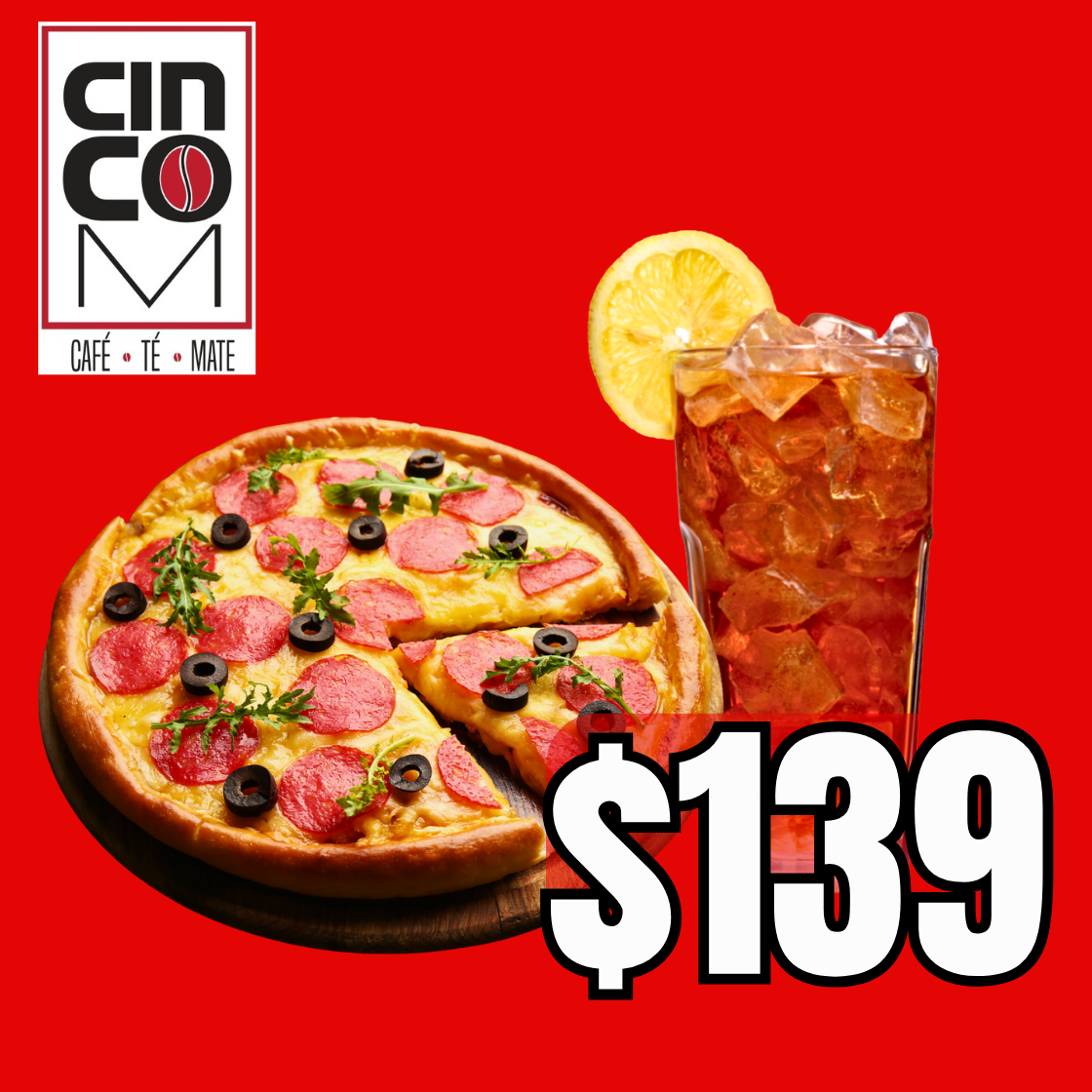 Pizza de 20 centímetros elige 3 ingredientes a tu gusto. + un te helado