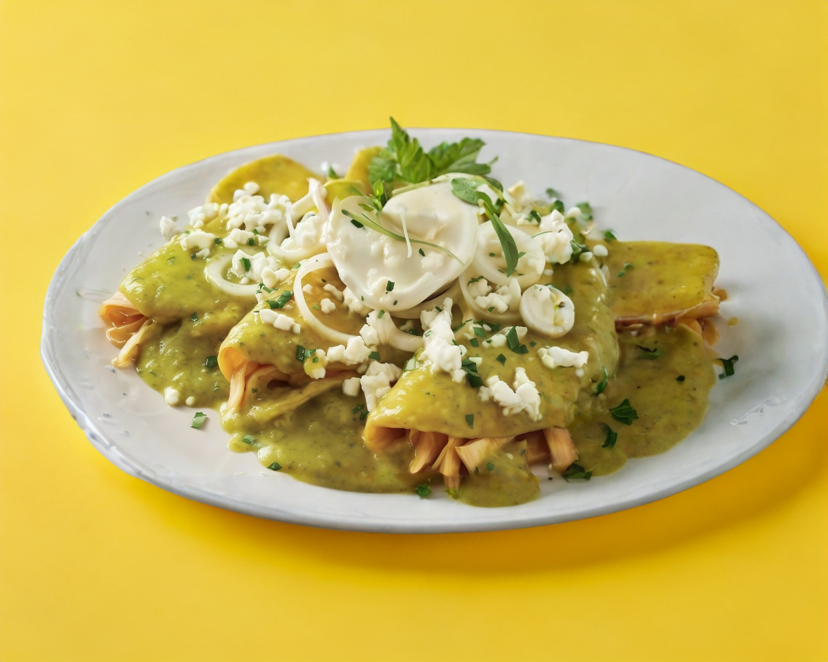 Rojos o verdes con queso y crema, acompañados de frijoles y pan para una persona