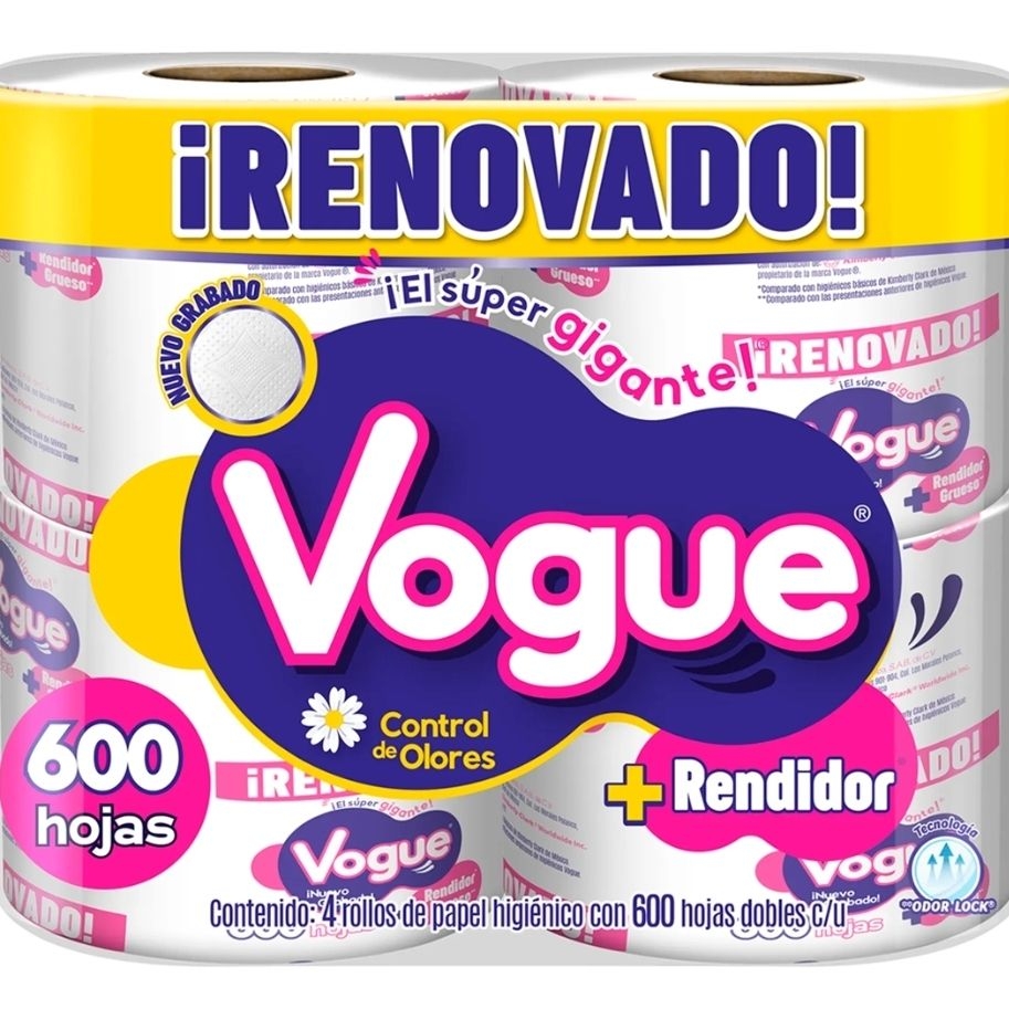 Papel higiénico vogue 600 hojas paquete con 4 rollos