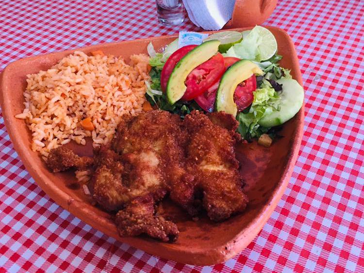 Filete de pollo empanizado, acompañado de arroz y ensalada y tortillas ( porción 1 persona)
