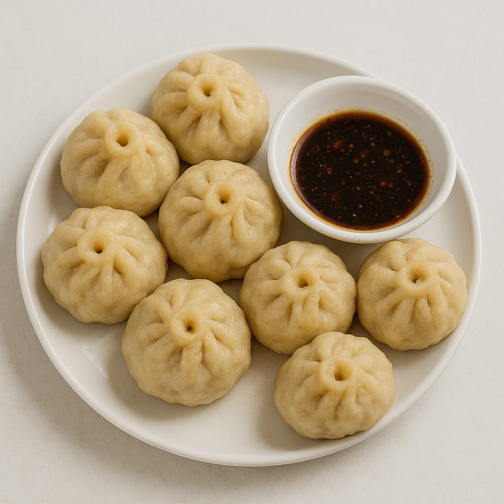 Delicados dumplings al vapor con masa suave y relleno jugoso. 🥬 Vegetariano, con mezcla de verduras frescas y huevo. Acompañados de salsa de soya con un toque de jengibre. Perfectos para disfrutar calientes.