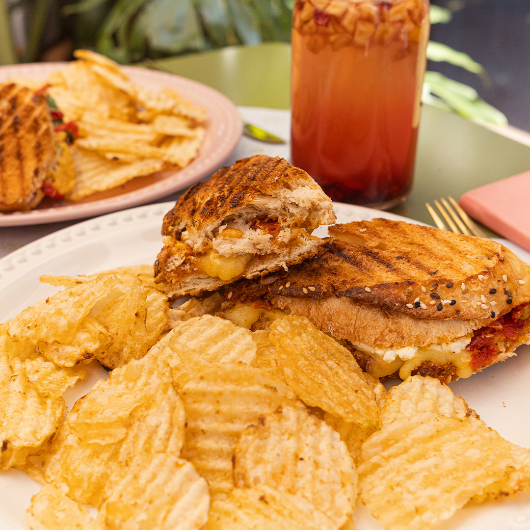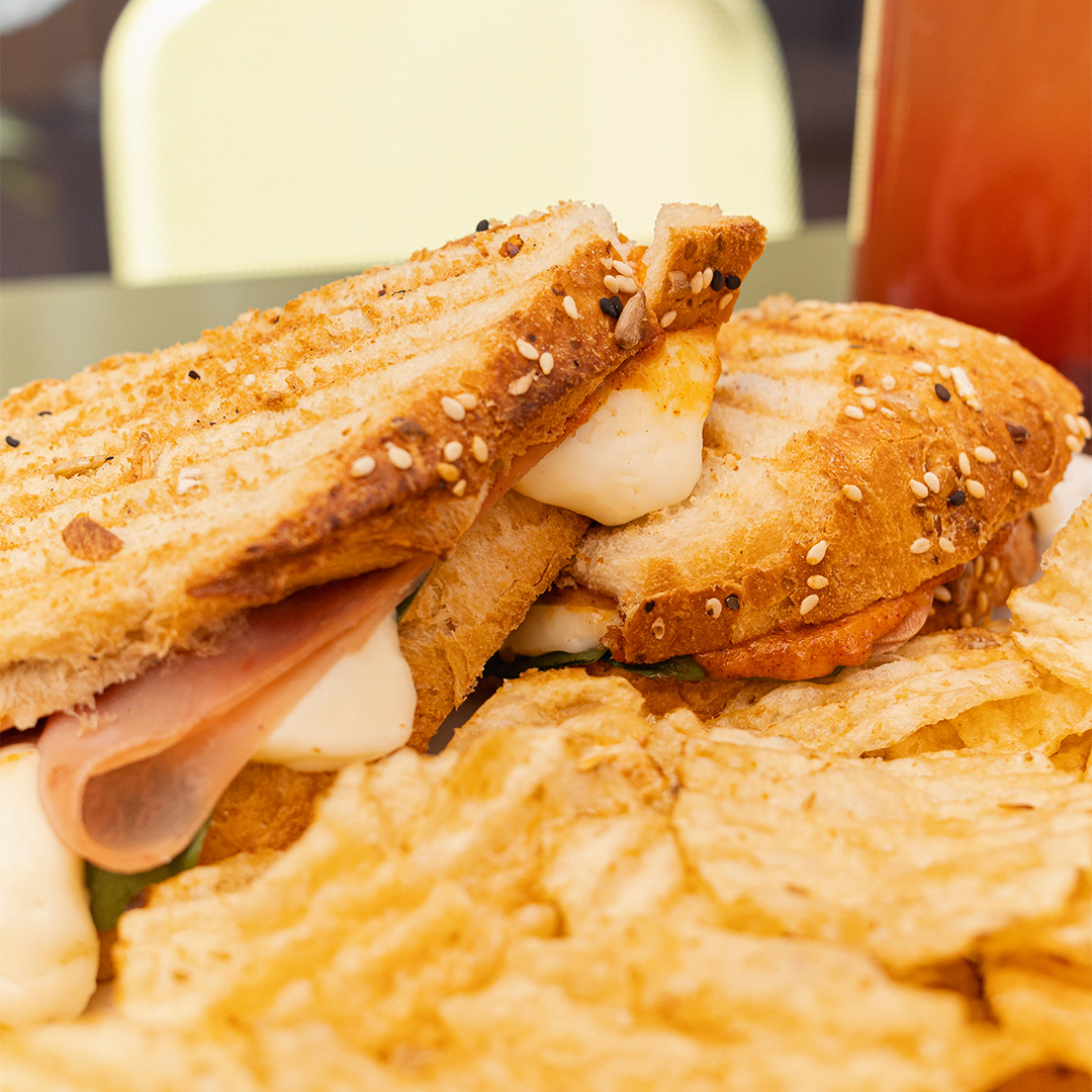 Irresistible sangüish con queso derretido por dentro acompañado de nuestra selección de chips.
