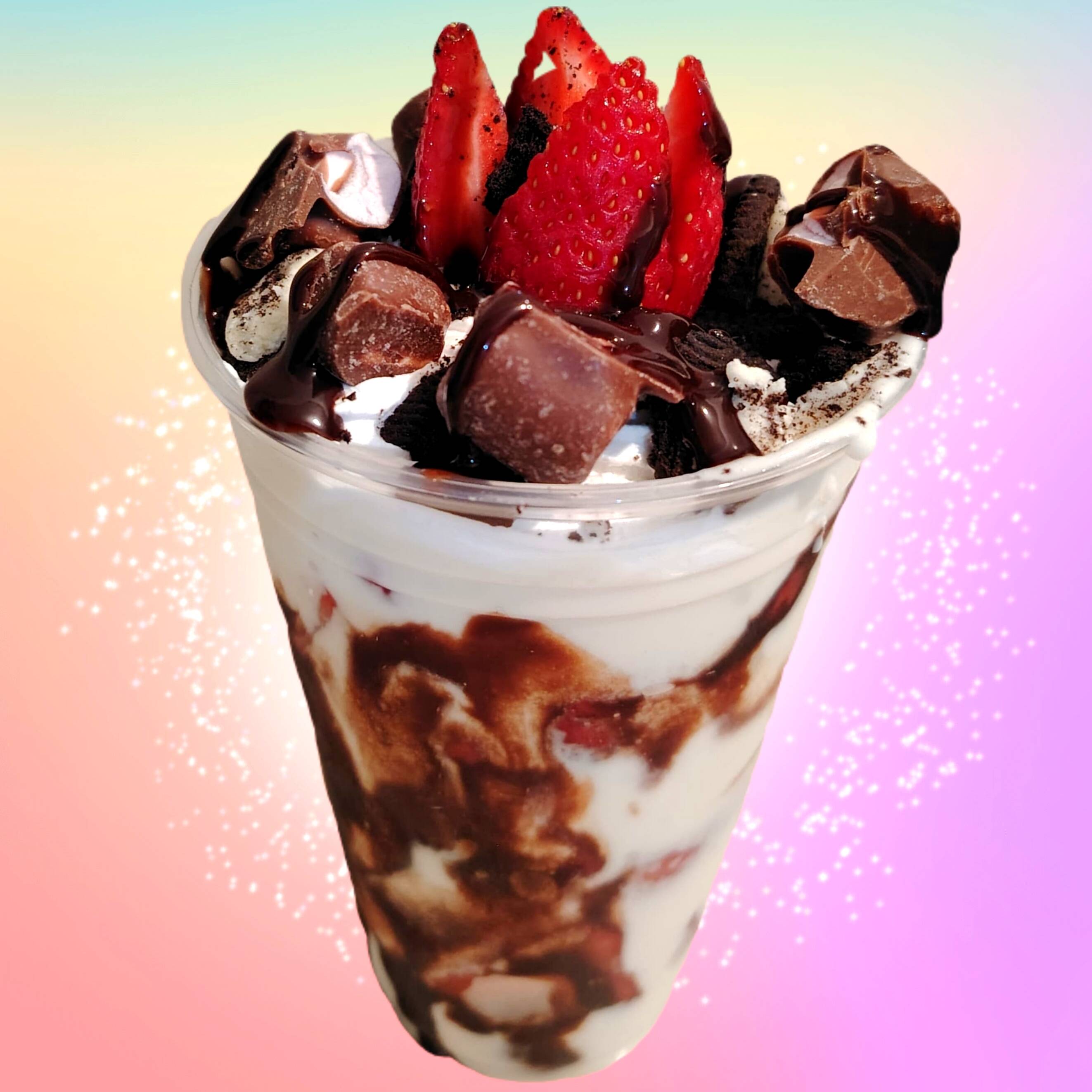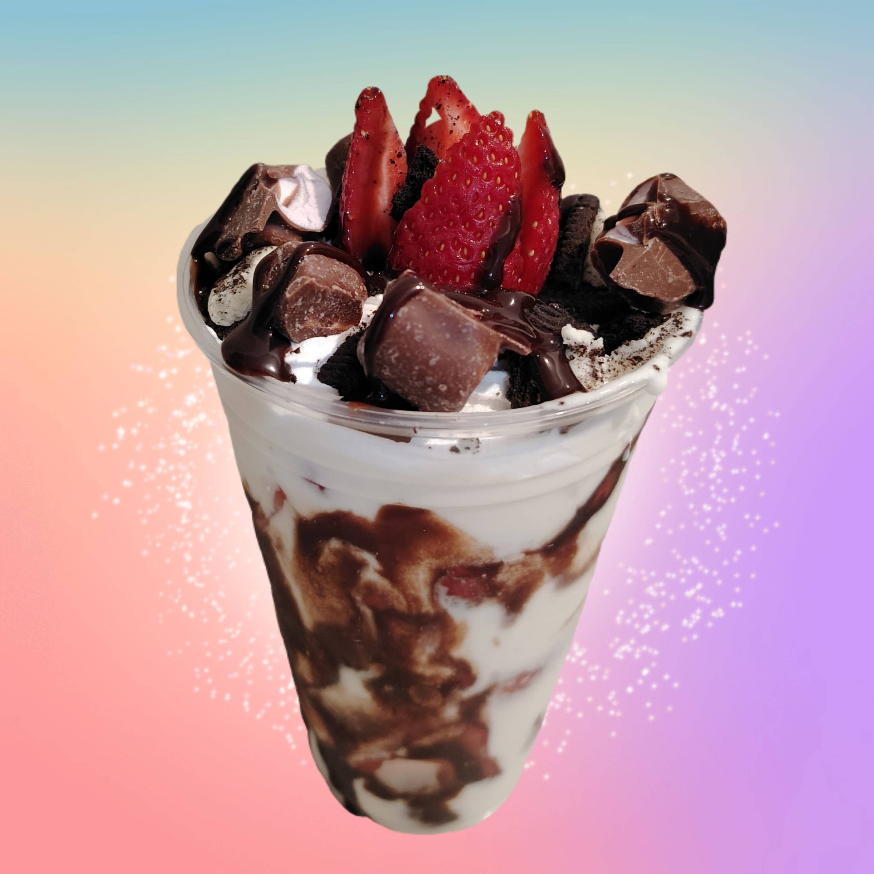 Fresas cubiertas con crema de la casa en vaso de 14 Oz +1 base,1 cubierta y 1 toping