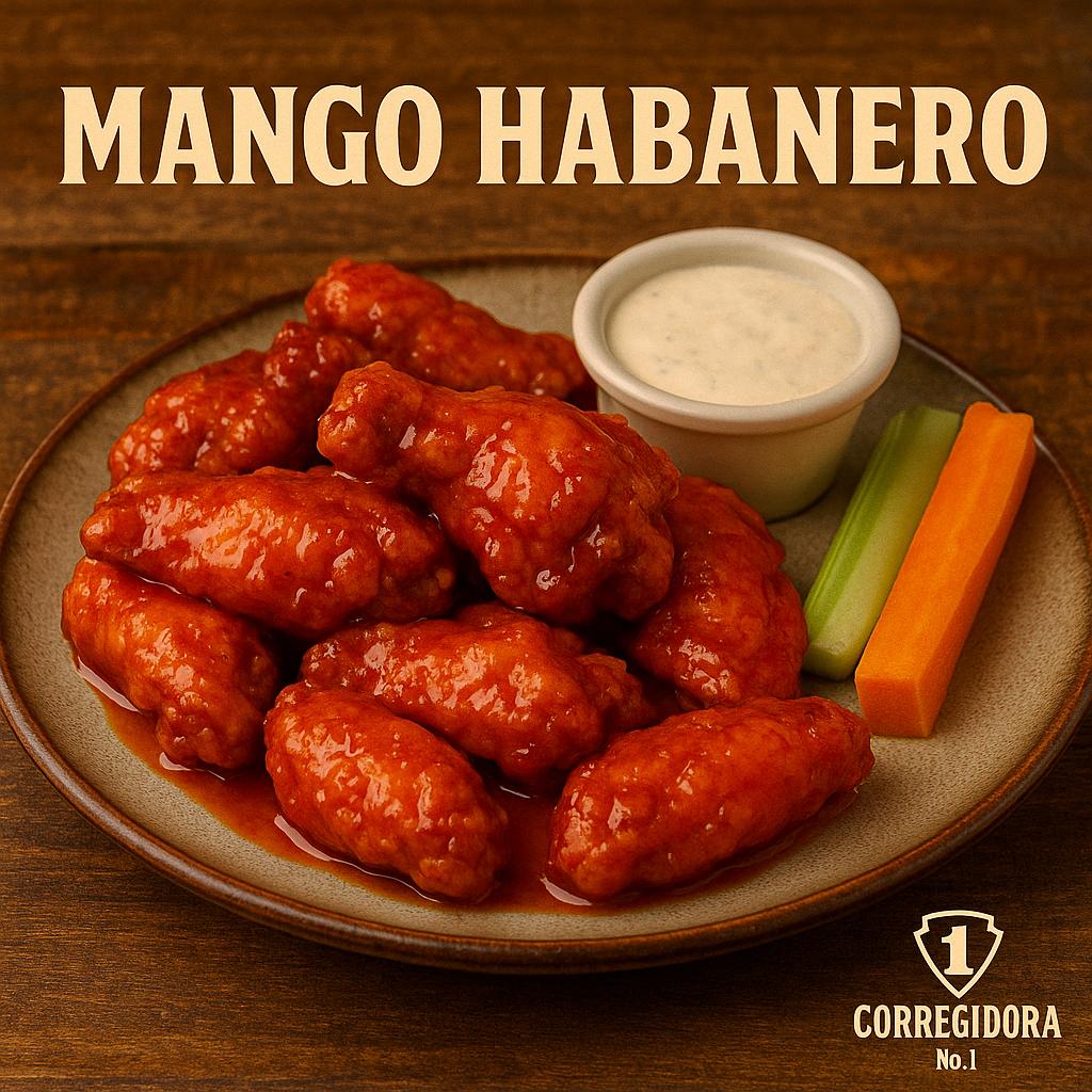 Alitas de pollo crujientes bañadas en salsa de mango habanero, acompañadas de papas a la francesa y salsa tártara.