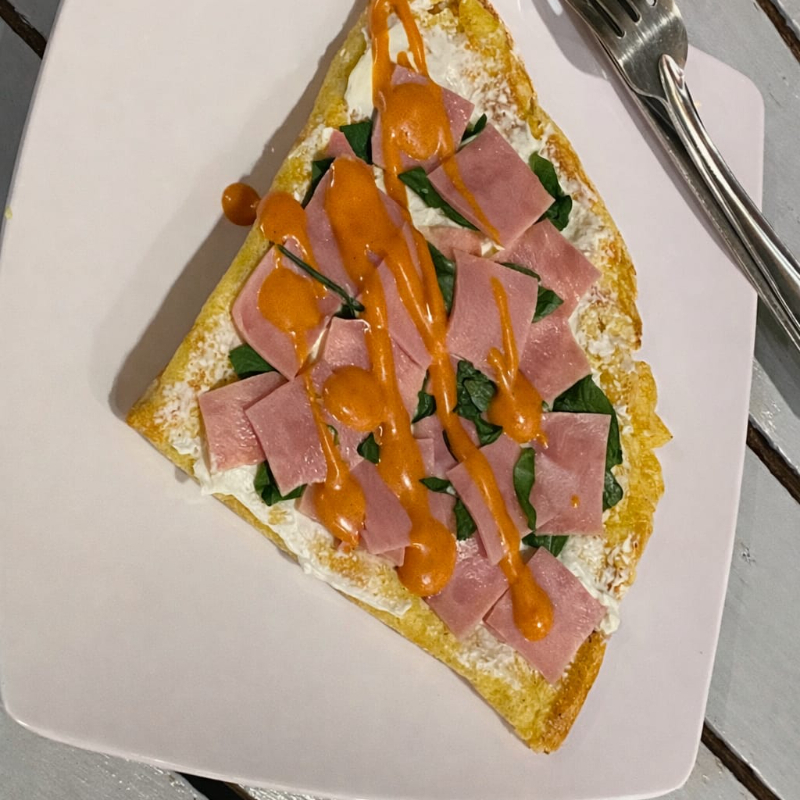 Queso manchego, salsa de tomate y (atún, champiñones o jamón)