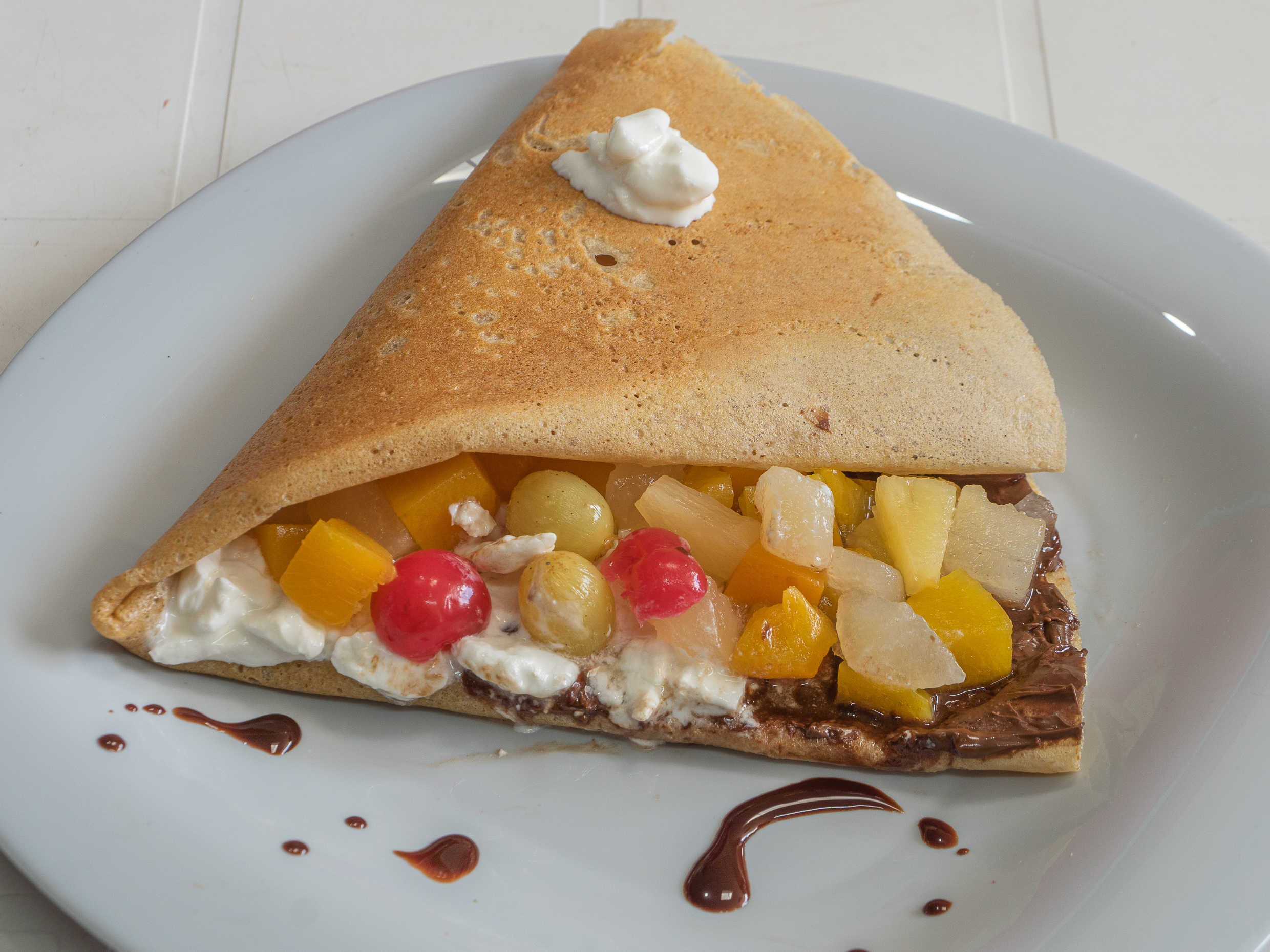 Hojuela de harina recién preparada con diversos sabores a su elección.