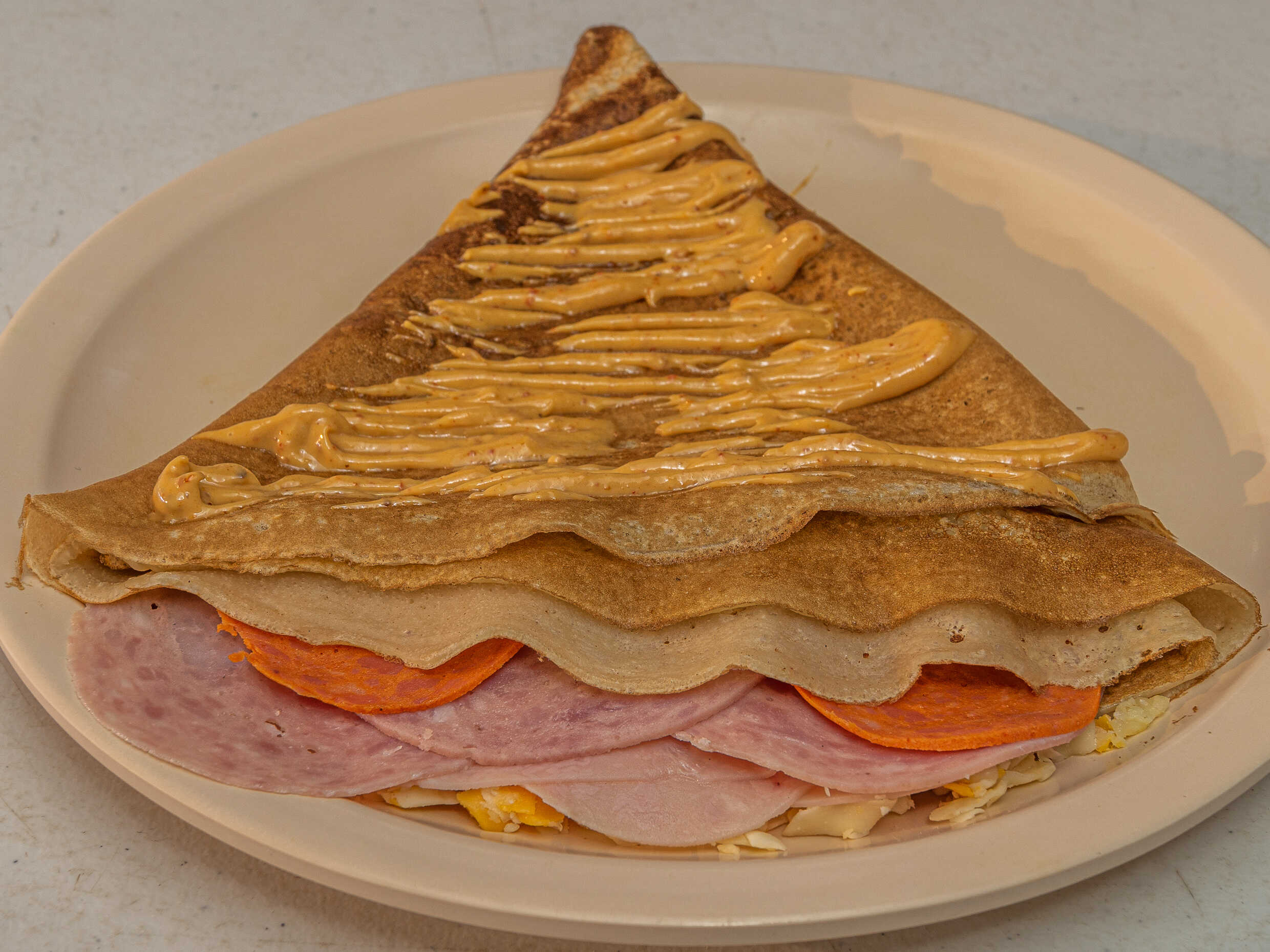 De jamón, pepperoni y 3 quesos, incluye un aderezo.