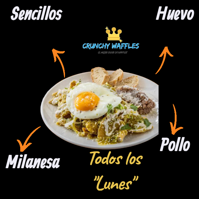 Chilaquiles verdes preparados con crema, queso , cebolla ,frijoles, piezas de pan y proteina de tu elección.