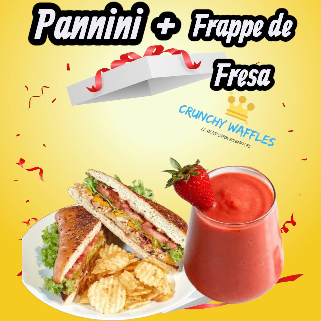 Panini de pollo + papas tipo sabritas + Frappé de fresa 12oz