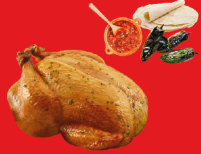 1 Pollo, 1/4 kg de tortillas, 1 orden de jalapeños y 1 salsa.