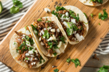 Bistec, chorizo, tortilla de harina con queso, bistec, chorizo y cebolla cocida.