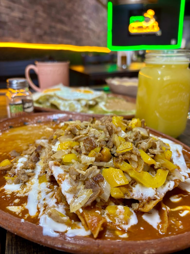 Chilaquiles con Pollo Deshebrado*1 + Agua del Día 1/2 Litro*1