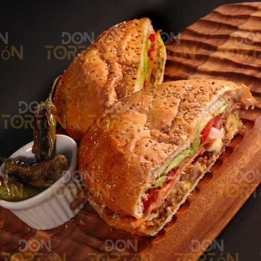 Milanesa, pierna, queso blanco, queso amarillo, jitomate, cebolla y aguacate.