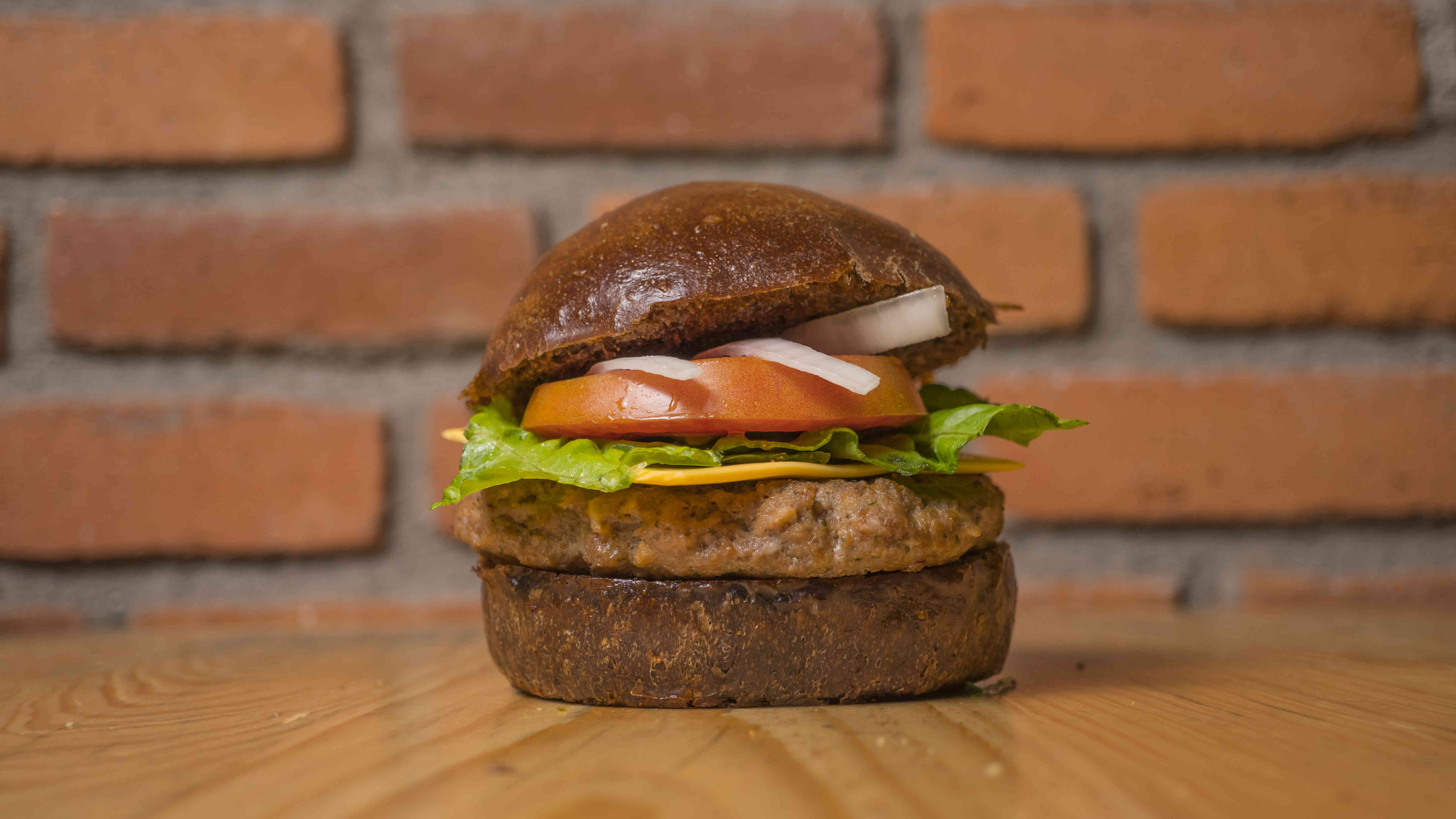hamburguesa con queso, carne, lechuga, tomate y cebolla.