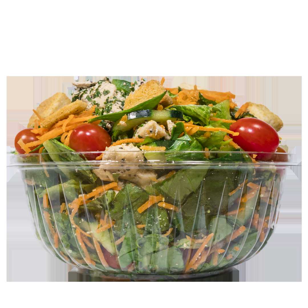 Cama de lechuga, 2 porcion de proteina , 3 porciones de barra fria, crutones o tiras de maiz, aderezo.