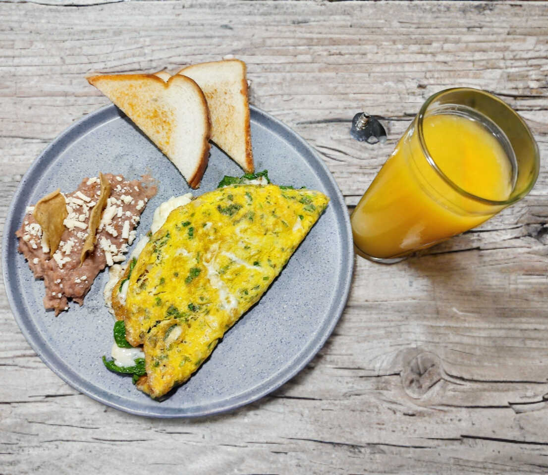 Omelette Espinacas con Queso de 9am a 1pm
