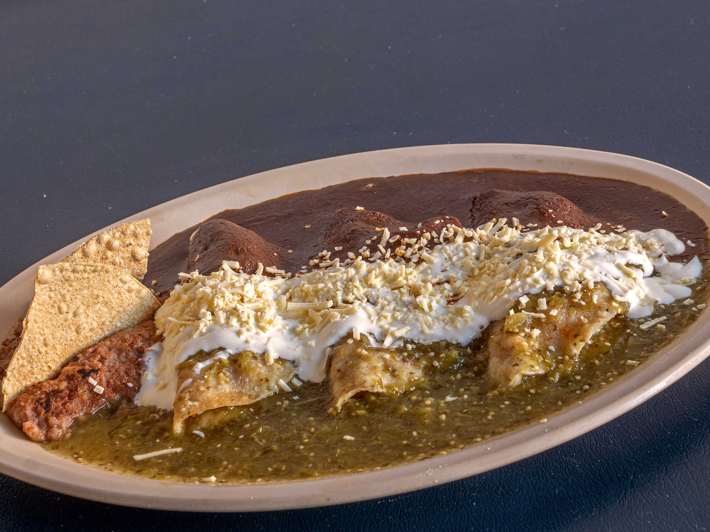 3 Piezas, bañadas la mitad salsa verde y la mitad con mole.