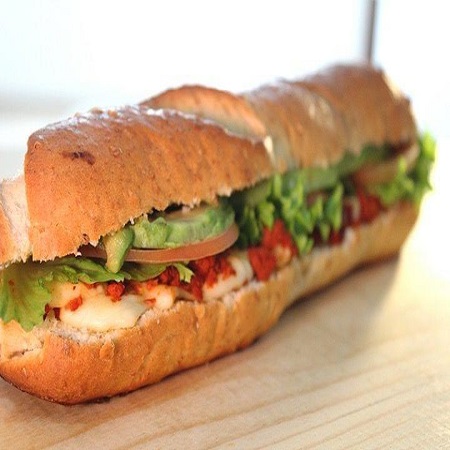 Jamón de pechuga de pavo, queso panela, espinaca, jitomate, aguacate y mayonesa.