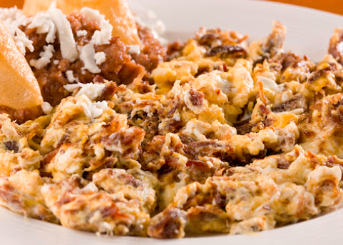 Con tocino, con chorizo, a la mexicana, rancheros, con jamó, con salchicha, poblanos, oaxaqueños, aztecas. Todos acompñados de un guisado, frijolitos, tortillas, salsa y café o agua fresca.