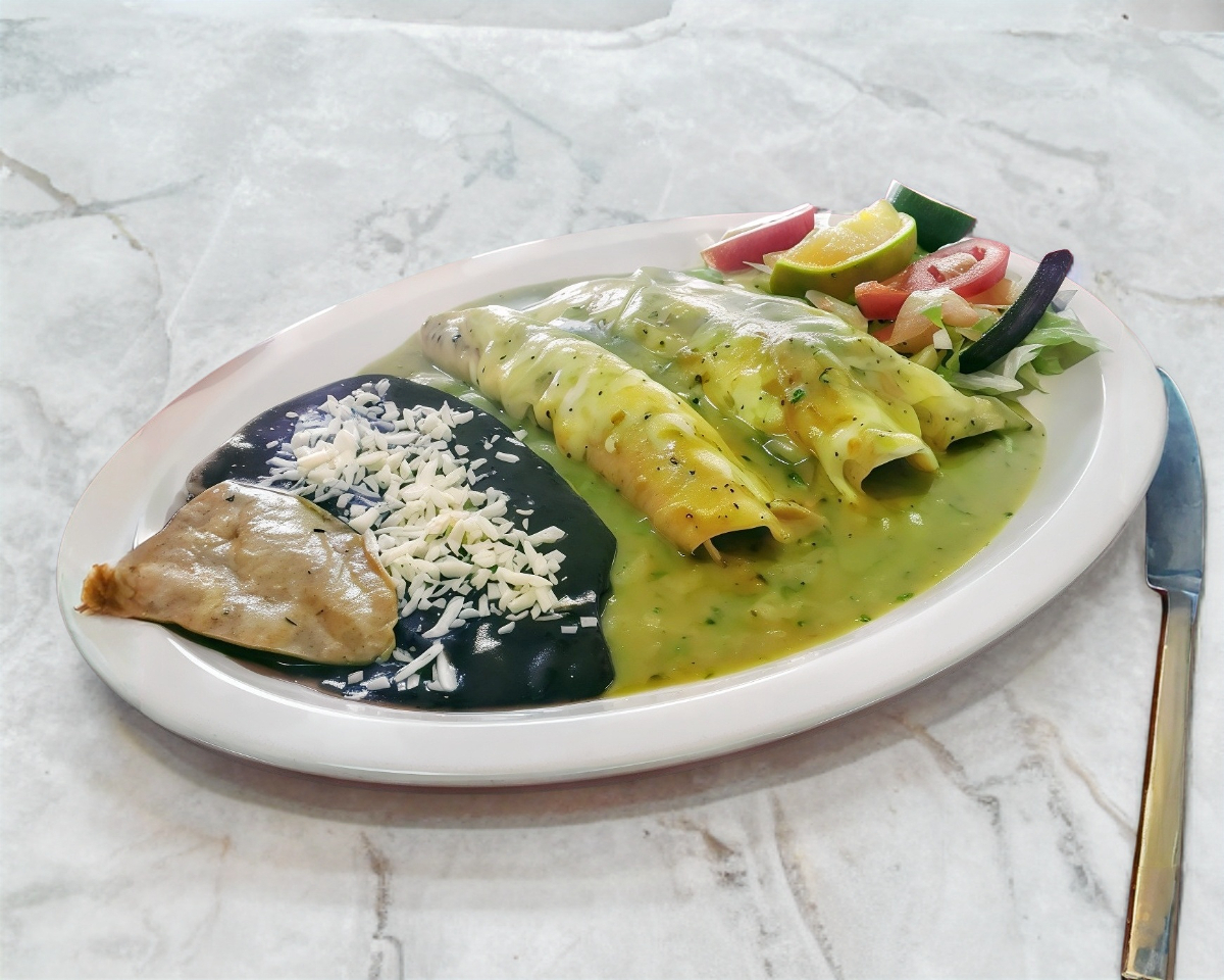 Enchiladas Verdes*1 + Huevos con Salchicha*1
