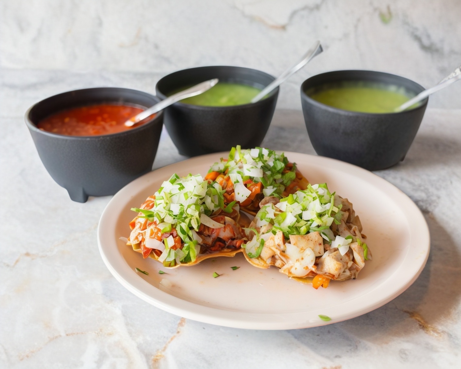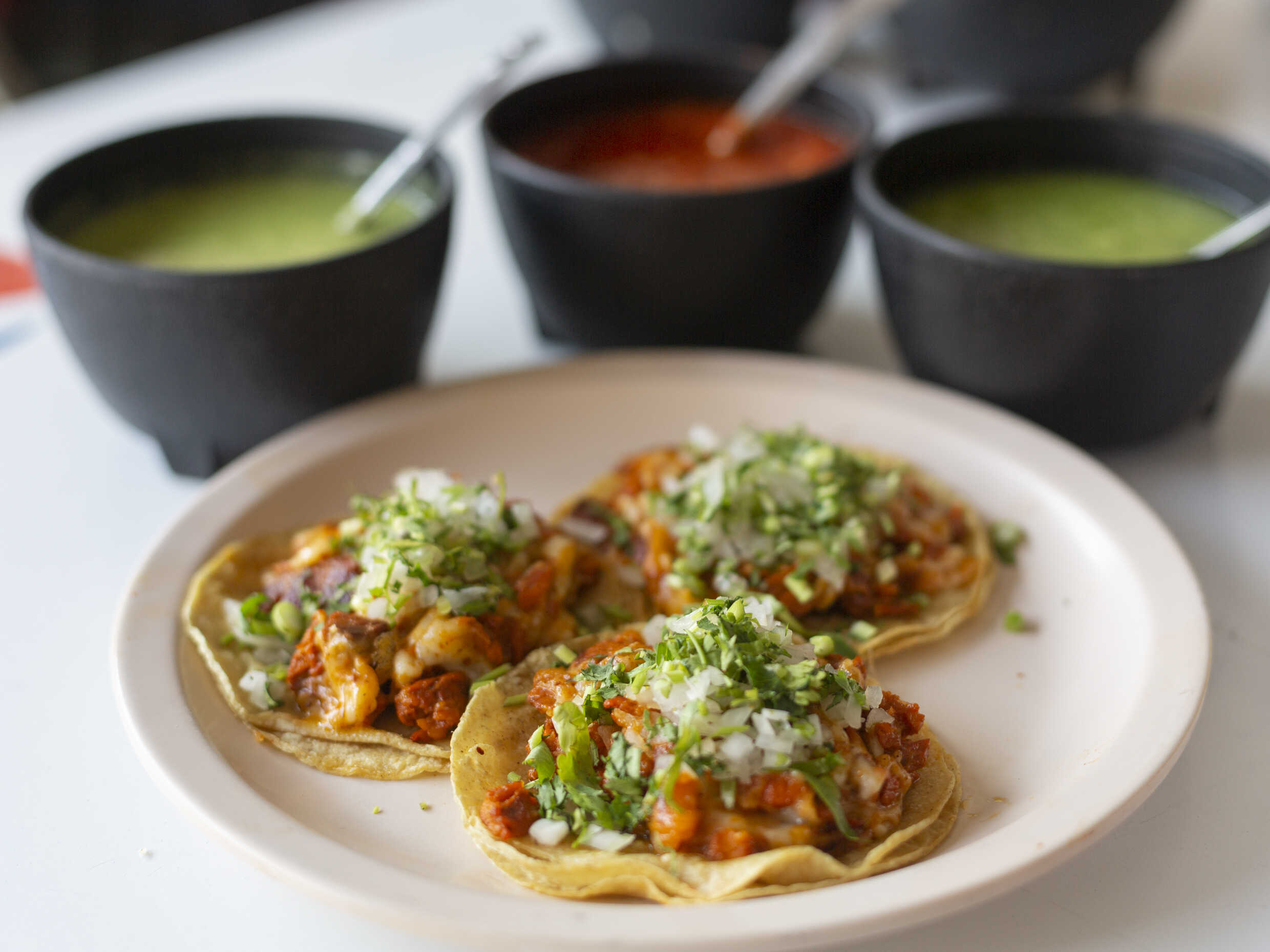 Todos los platillos se sirven con cebolla y cilantro.