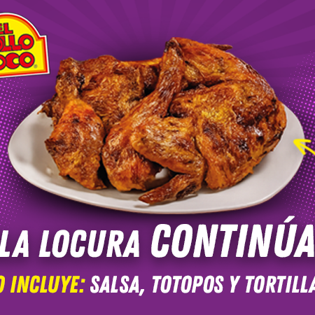 Pollo 3 piezas y 2 complementos a elección. Incluye salsas, tortillas y totopos y refresco a elección