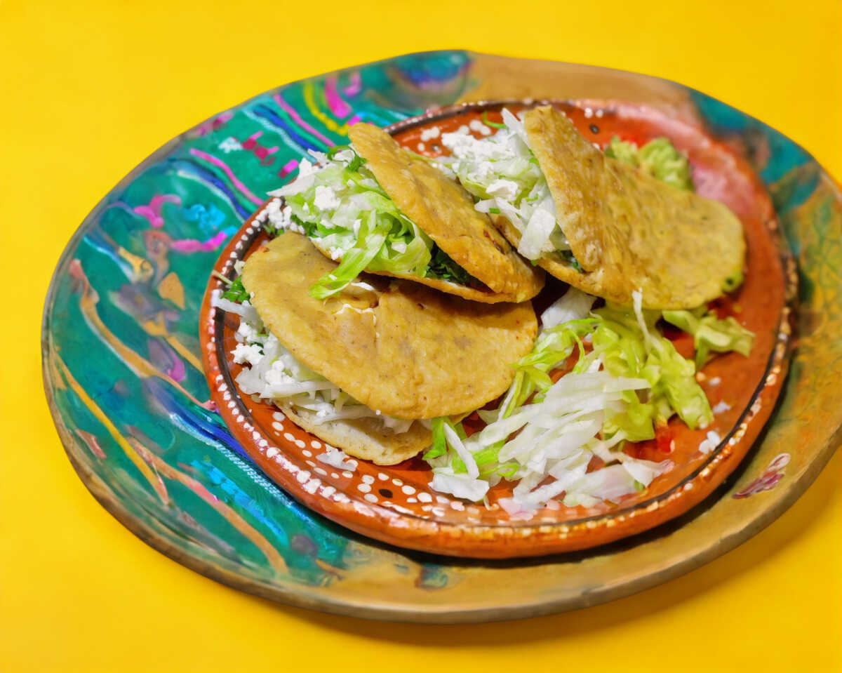Gordita de queso oaxaca y asadero con lechuga y queso ranchero.