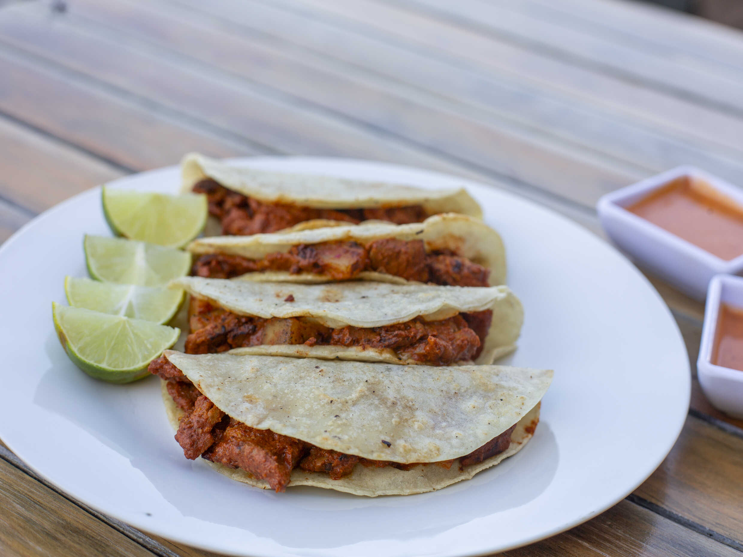 Orden de 4 tacos puedes elegir entre pastor, bistec, cecina y cochinita. Con tortilla de harina o de maíz.