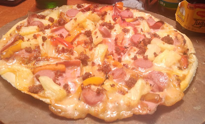 Si, deliciosos chilaquiles en una pizza. Incluye sobre de catsup.