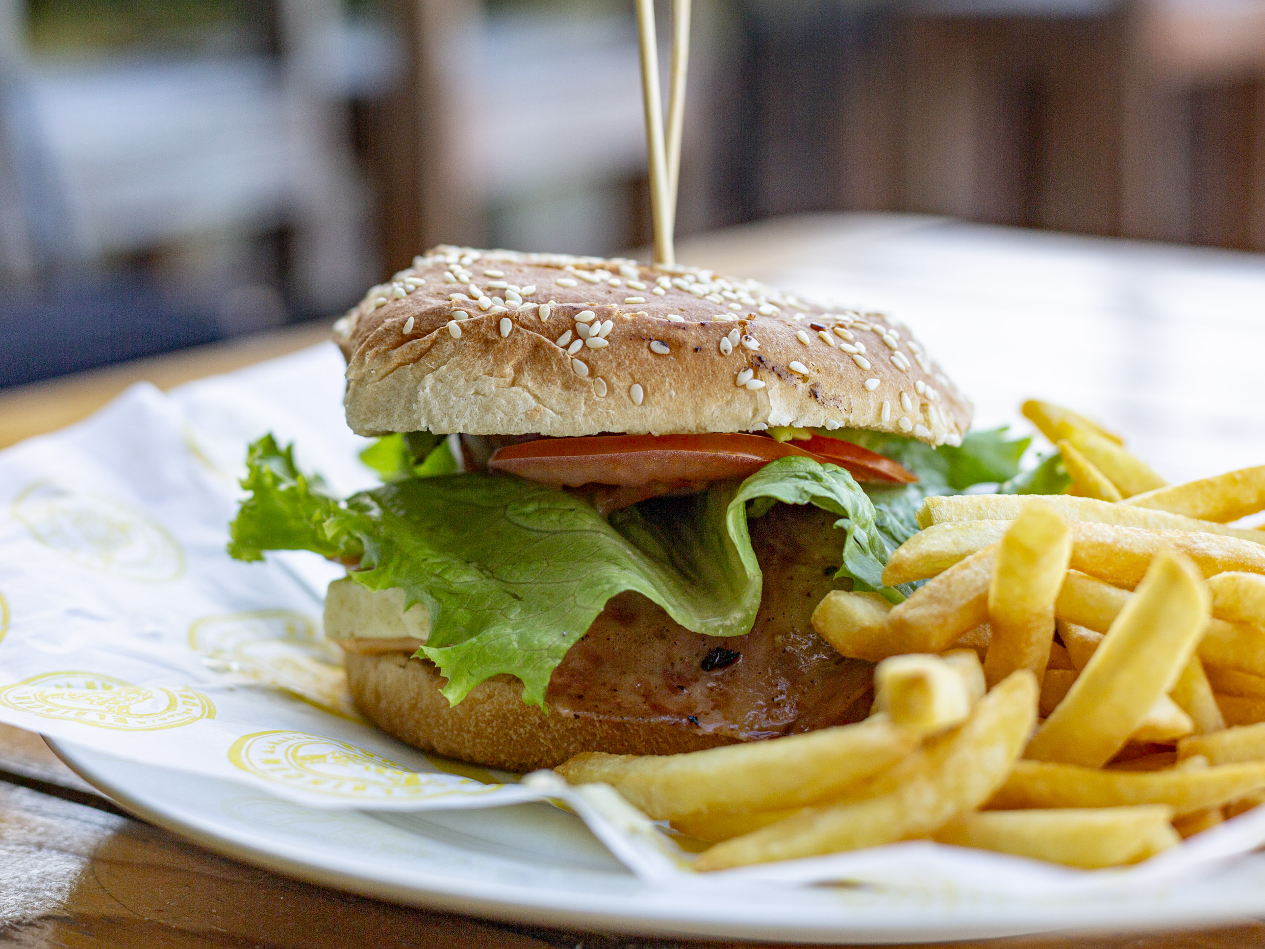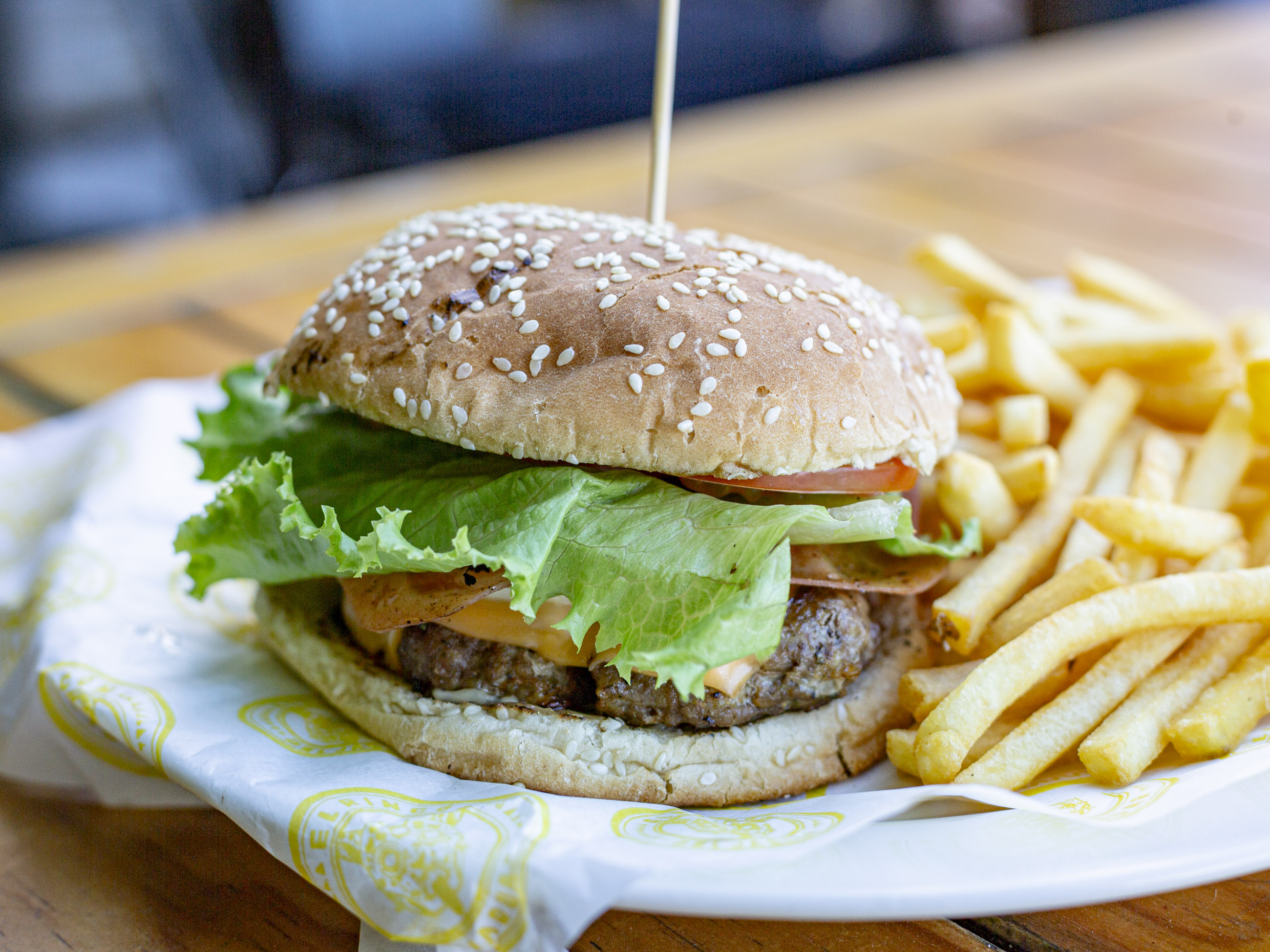 Deliciosa hamburguesa de arrachera con papas. 2x1