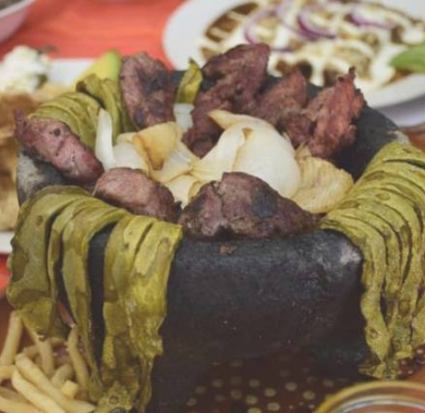 Para 4 a 5 personas por 1 kilo. Guarniciones de papas, nopales, cebollas asadas, frijoles, guacamole y chiles toreados.