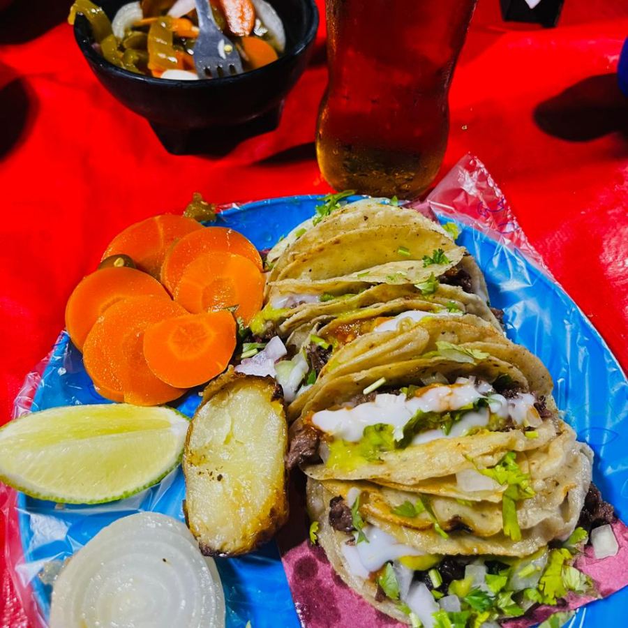 TACO DE BISTEC DE RES CON TORTILLA TAQUERA