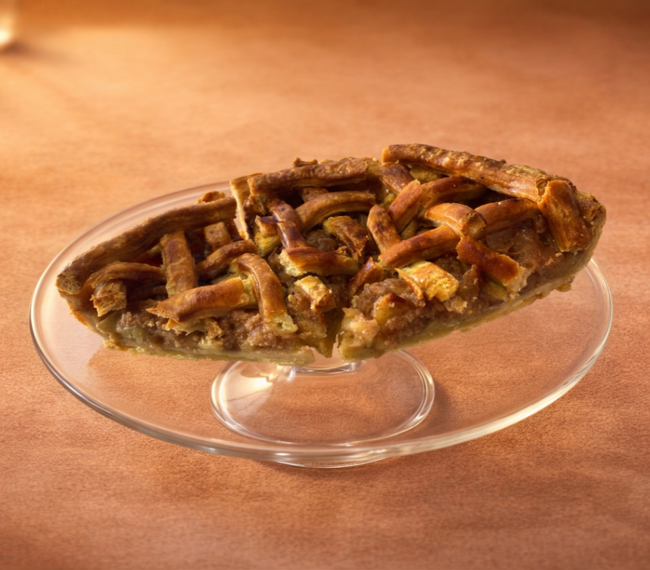 Tarta horneada con láminas de manzana especiadas con canela y azúcar.