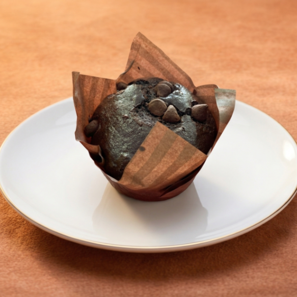 Panquecito esponjoso de chocolate intenso con trozos de nuez pecana.