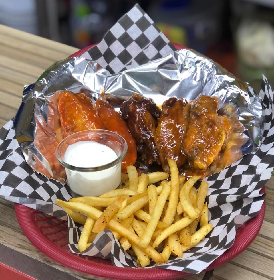 5 Alitas fritas y 125 gr de papas.