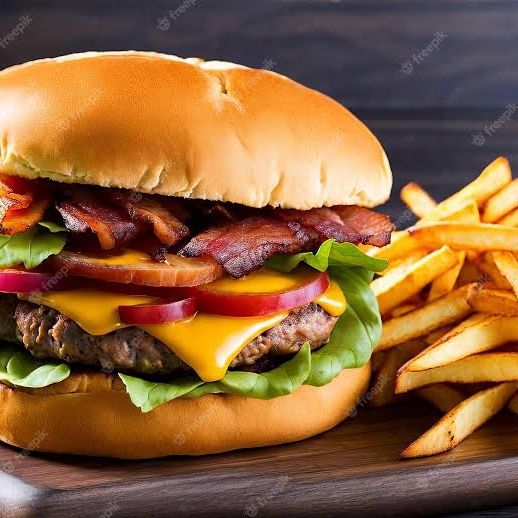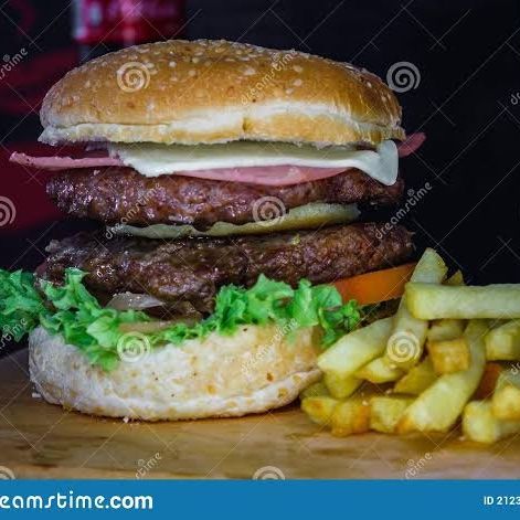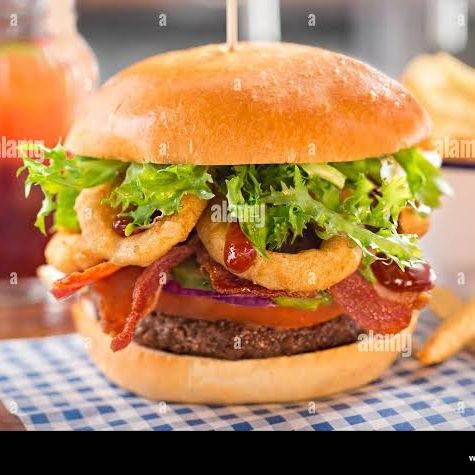 Hamburguesa con tocino c/ papas