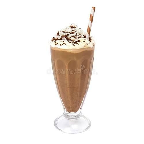 Bebida fría , hielo ,leche deslactosada,azúcar, chocolate y Chantilly