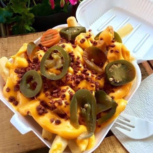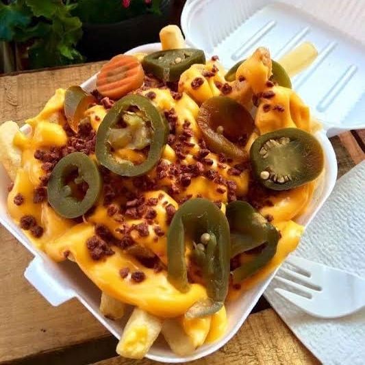 Queso amarillo, jalapeño y tocino.