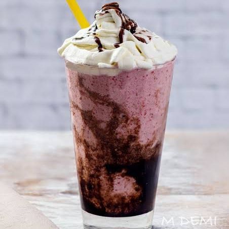 Bebida fría , hielo ,leche deslactosada,azúcar, fresa natural y Chantilly