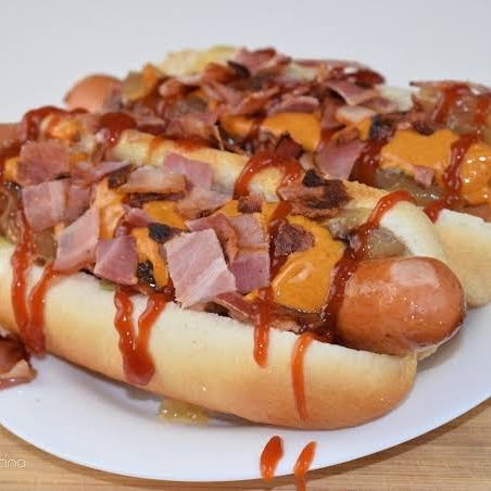 Salchicha de pavo, tocino, jitomate, cebolla, jalapeño, cátsup, mostaza, mayonesa.