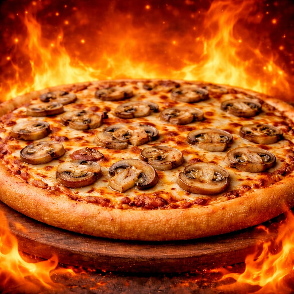 Una combinación clásica y deliciosa: champiñones jugosos 🍄 y jamón de calidad 🍖, sobre una base de queso fundido abundante 🧀🤤 que se derrite en cada rebanada. El sabor es suave pero lleno de carácter: lo terroso de los champiñones con el toque salado del jamón crean una mezcla perfecta, cremosa y bien equilibrada 🔥