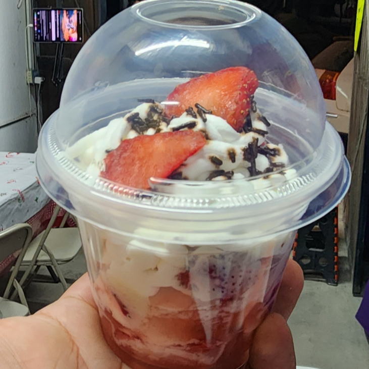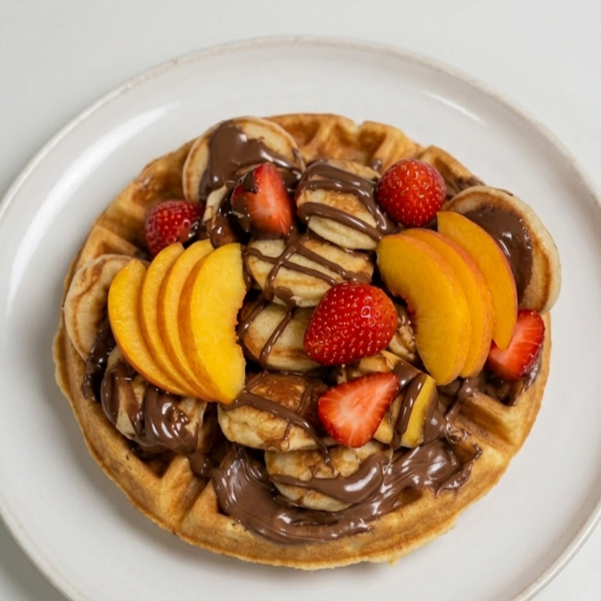 Wuaffle con chocolate,nutella,durazno,fresa.