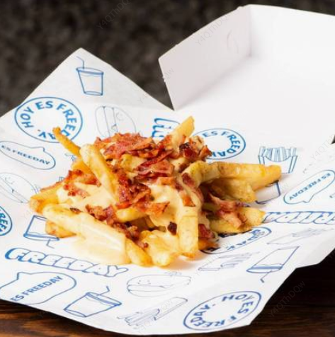 200 g De papas fritas, salsa de quesos y tocino ahumado.