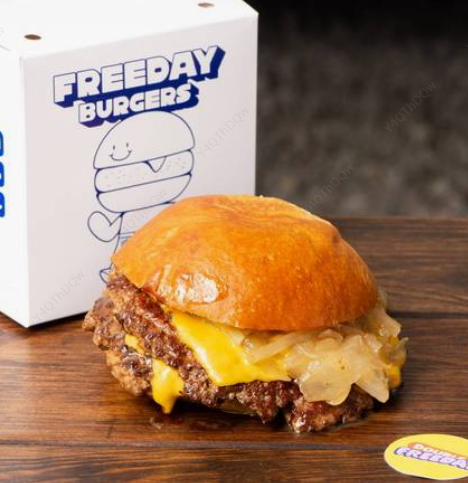 120 g De Carne de Res, queso americano, cebolla caramelizada y aderezo de la casa.