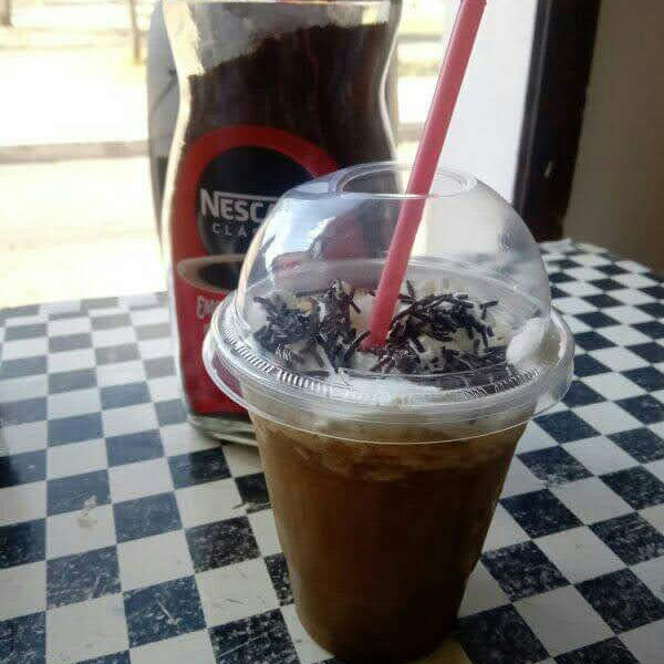 Nescafé soluble, azúcar . Pueden agregar leche Carnation Clavel en polvo.